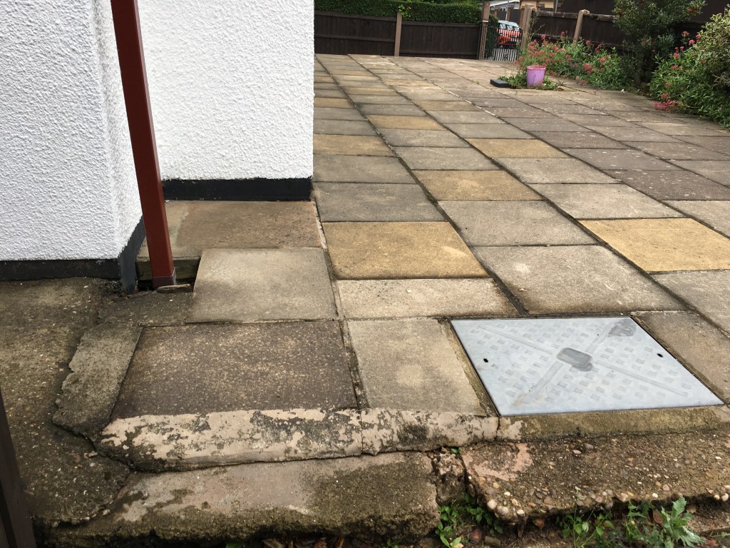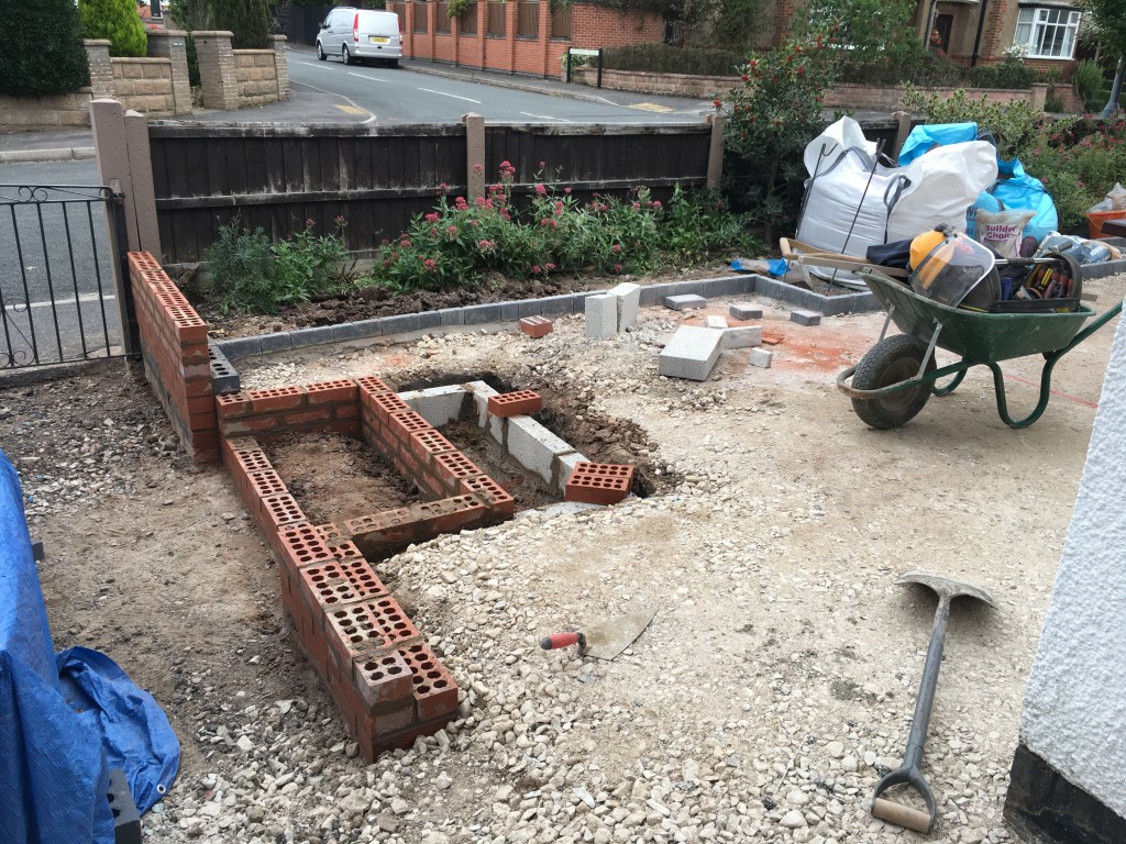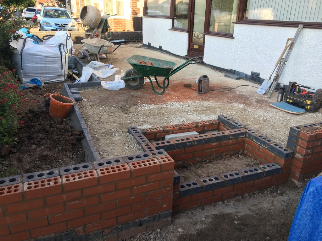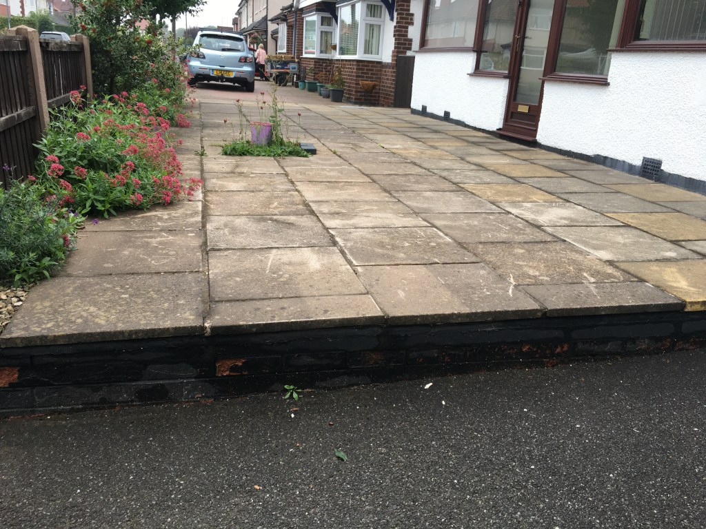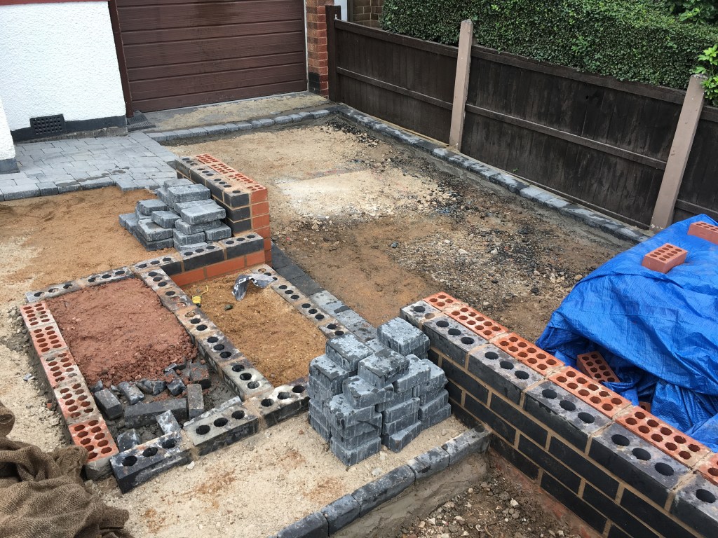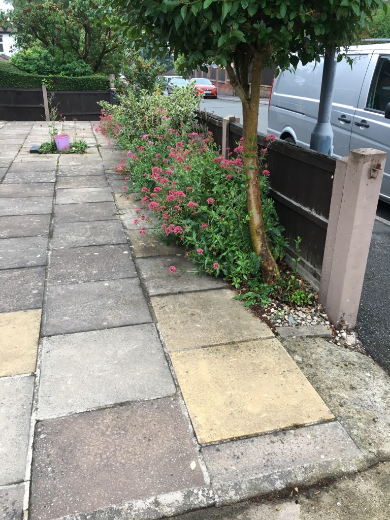 The new porous block paves will give way to ugly outdated slabs. Giving a better flow of water away from the house and using it to feed the new planting.