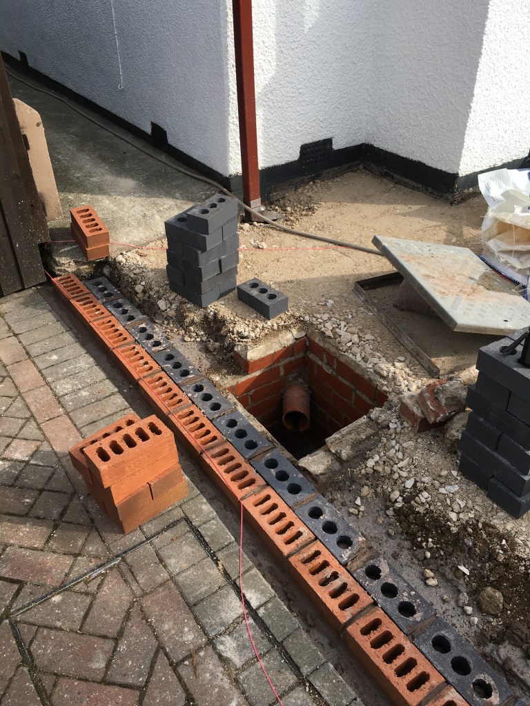 A Stone edging was added for the ‘new’ planting area. Footings were added for the steps to the drive area. New drain covers and a new waste drain.