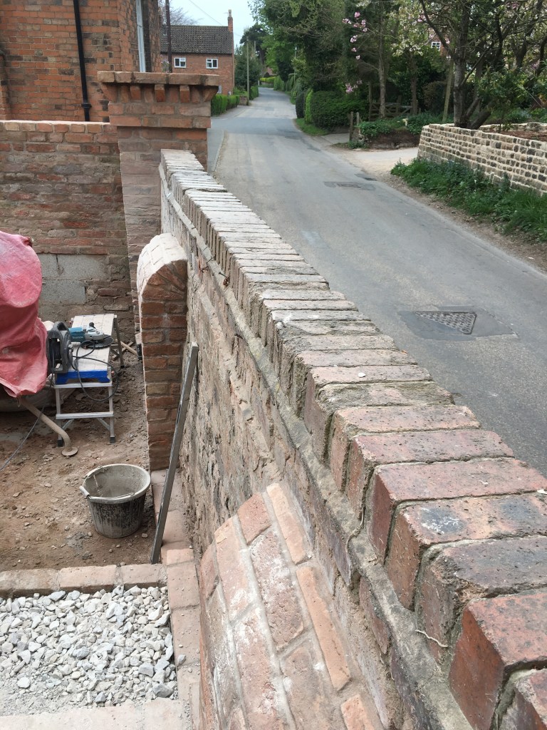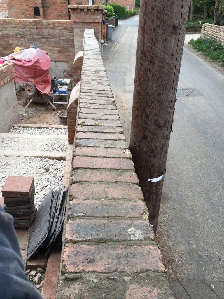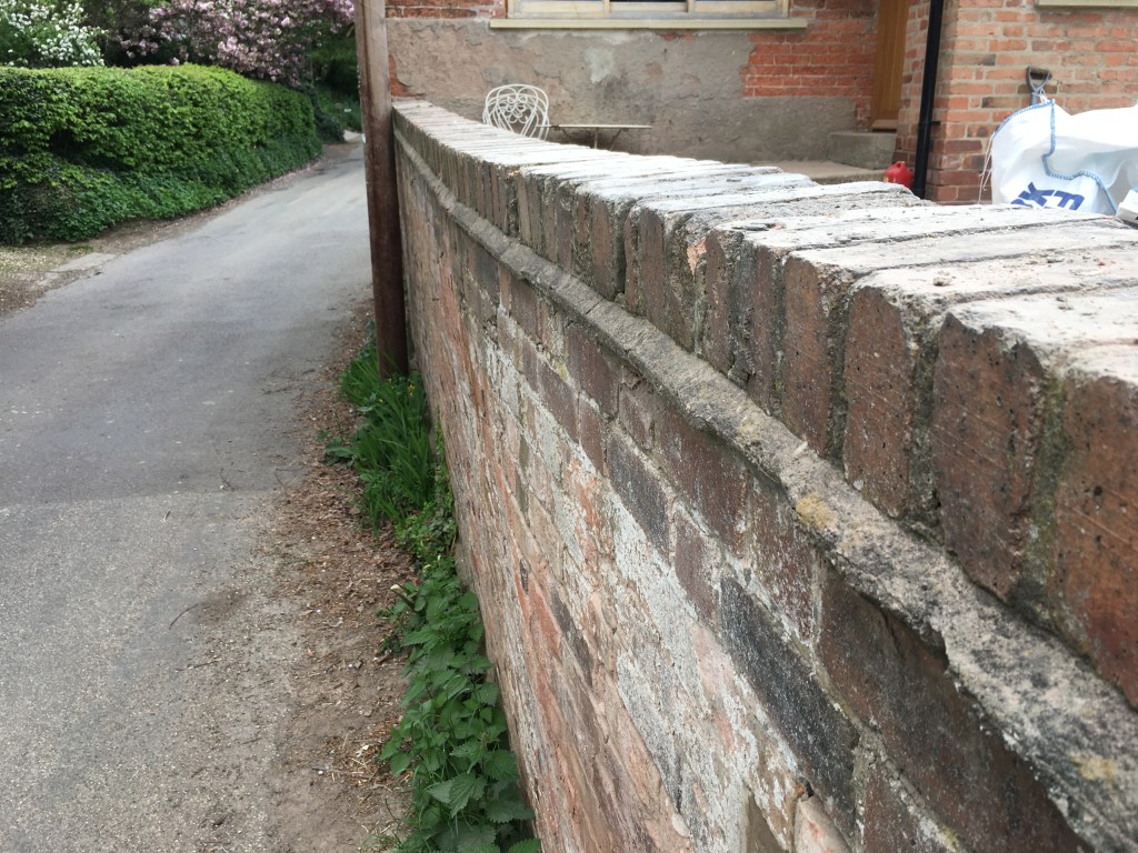 I made a decision for the old wall that a series of supports were required to strengthen it. These included removing old damaged areas and building buttresses to help correct the severe lean that the wall had developed towards the road. Because soil had been against the wall for decades, it had worked its way into the old bricks via the damaged pointing.