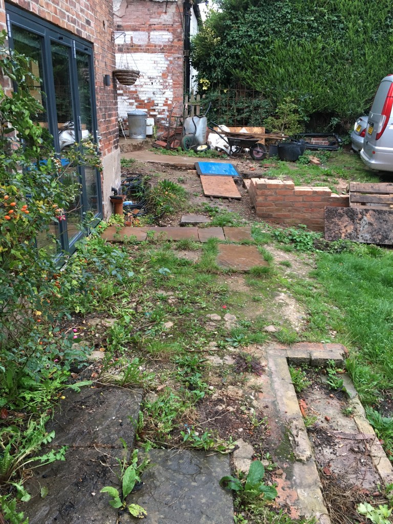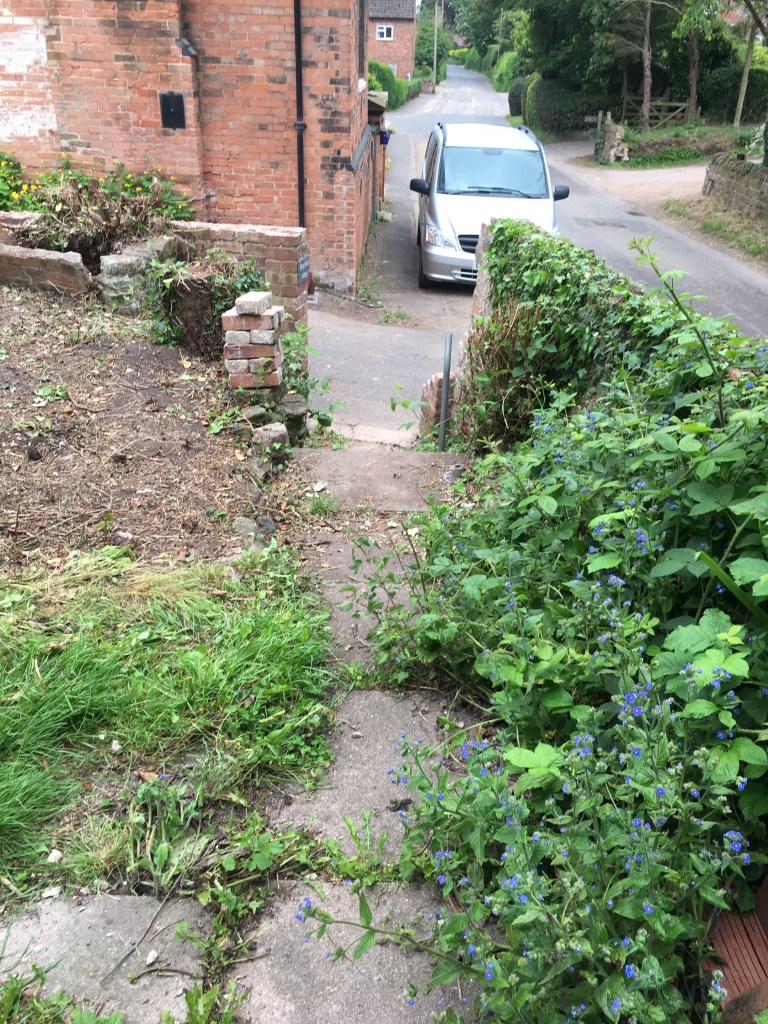 Now, moving back to the top of the garden. The pathway and upper patio areas are to be cleared.