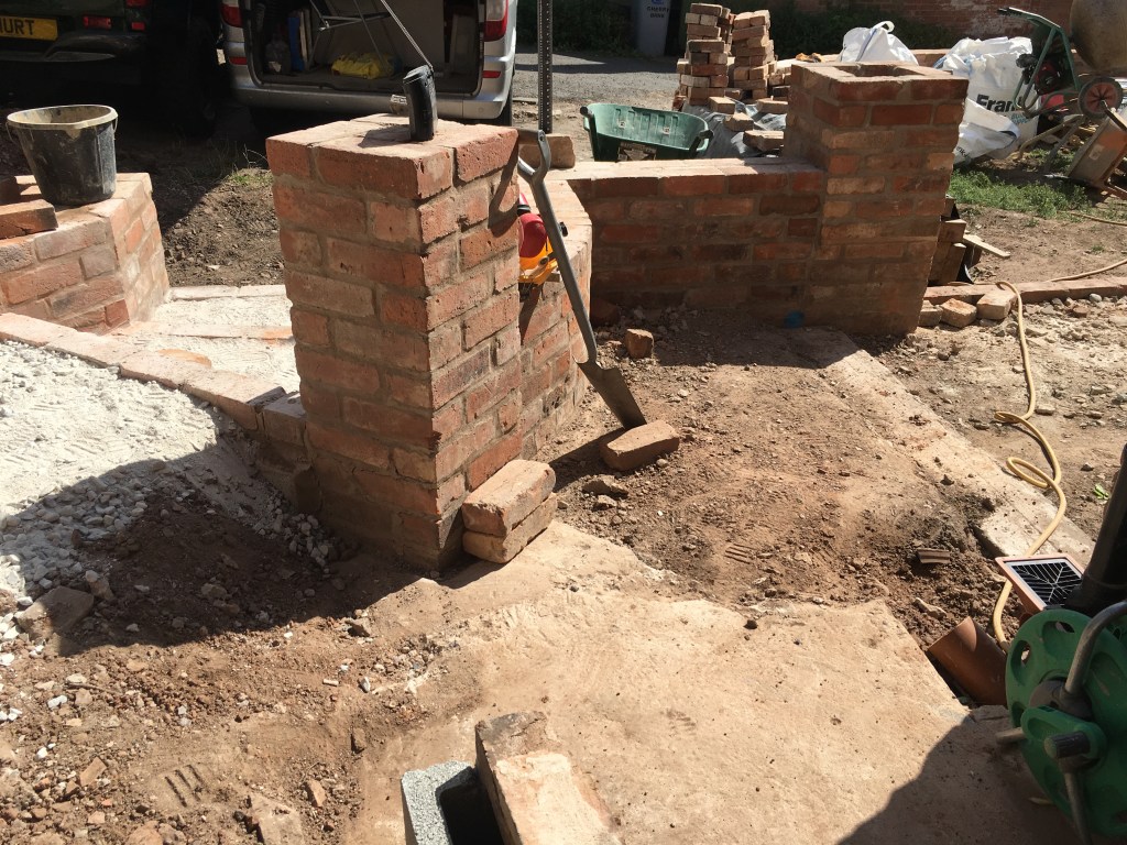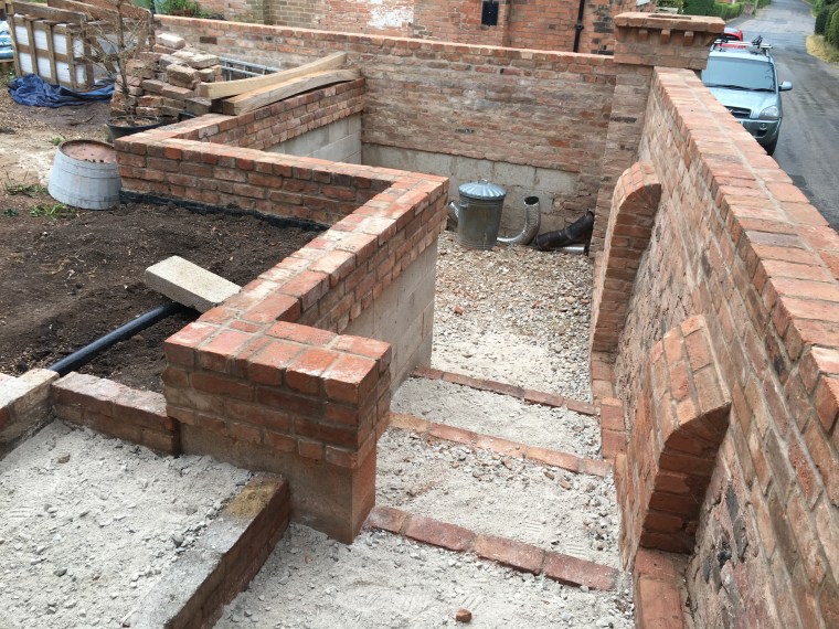 It’s taking shape. At this point, a supply of reclaimed bricks became a real issue. Trying to get the same size bricks was becoming very difficult, so a mix had to be done, which was frustrating.