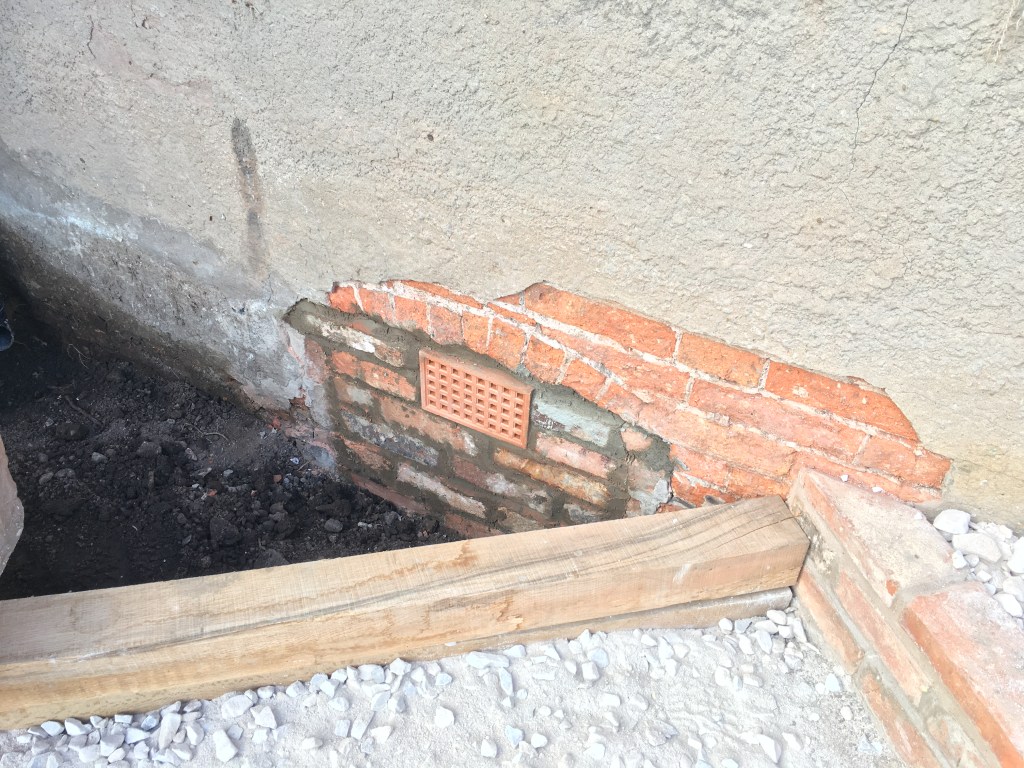 A stone air vent was added and the old coal doorway to the cellar was bricked off. This will be rendered at a later date.