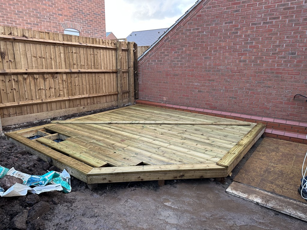 Create a quality finished Decking area usable from the side doors and easy access from the pathway. This was to lead into other works at a later date but let’s get the structure down to begin with, it really is the safest way of doing it.
